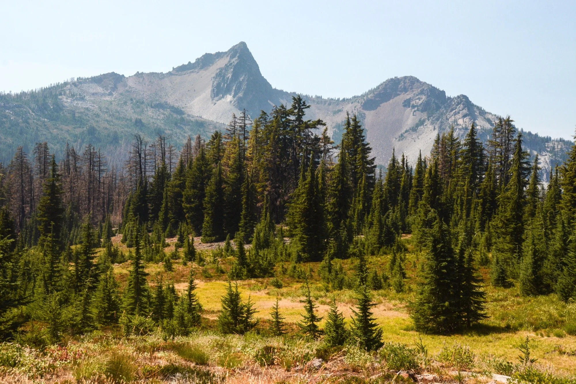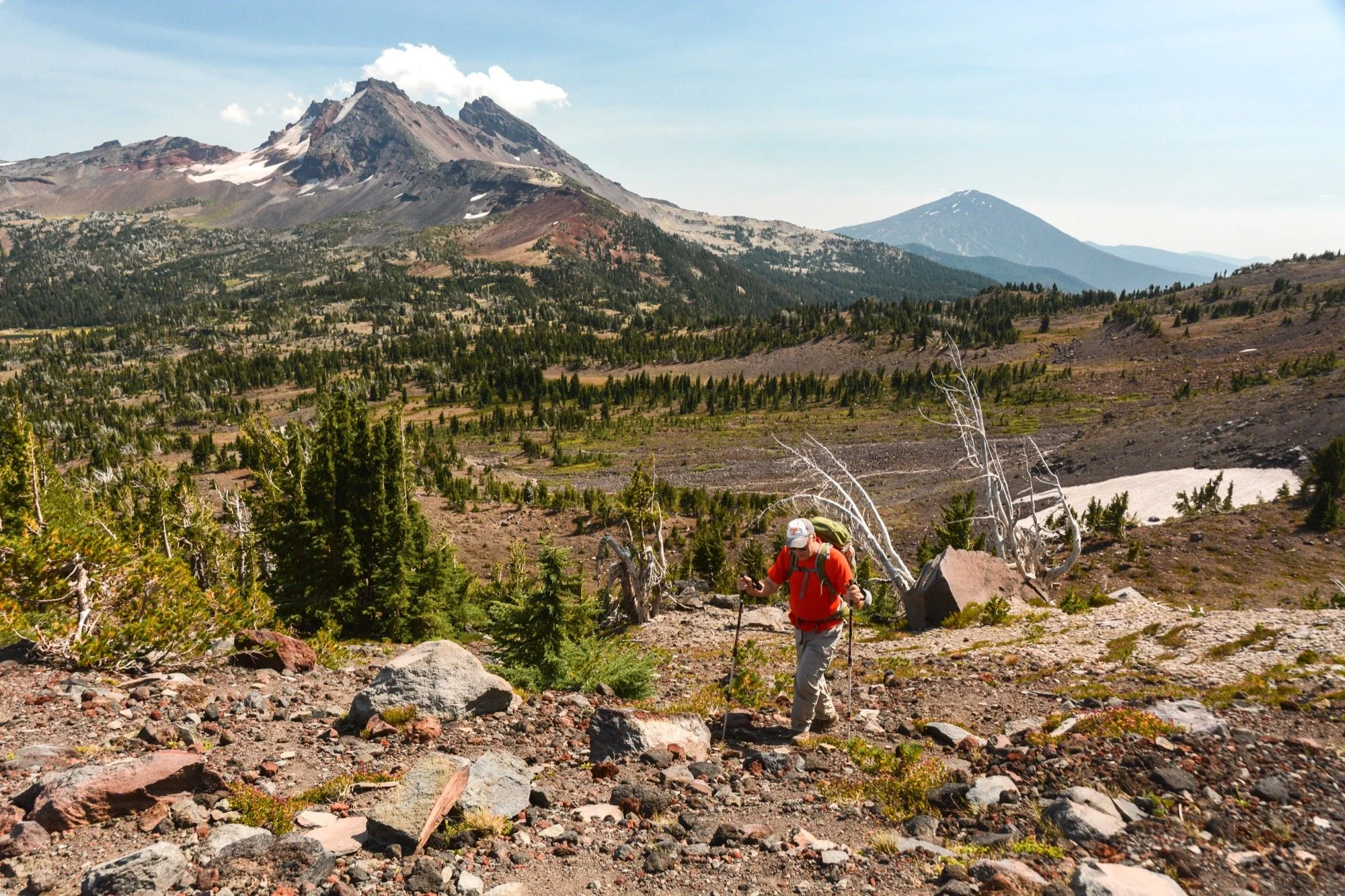 Stared up at them for two years. Saw them from various peaks and vantage points on all sides but the southwest. Now it was time to circumnavigate the Three Sisters. Counterclockwise over four days, starting and ending at the Green Lakes trailhead. Not a lollipop loop in my book because the duplicated stem was pretty short compared to the rest of the route. Let’s call it a lasso.